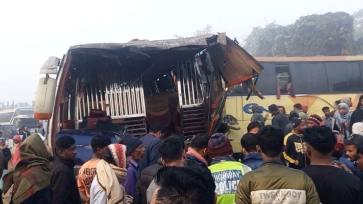 পুলিশ ও প্রত্যক্ষদর্শী সূত্রে জানা যায়, শনিবার সকাল ৭টার দিকে ঢাকা-সিলেট মহাসড়কের দয়ামীর মাদ্রাসার সামনে সিলেটগামী শ্যামলী পরিবহণের (ঢাকা মেট্রো- ব- ২৪ -৪২৮৬) ঢাকাগামী এনা পরিবহণের বাসের (ঢাকা মেট্রো-ব-১২-৩৫৬০) মুখোমুখি সংঘর্ষ ঘটলে ঘটনাস্থলেই দুজন নিহত হন। এ সময় উভয় বাসের আরও অন্তত ১২ জন আহত হয়। তাৎক্ষণিকভাবে তাজপুর ফায়ার সার্ভিসের সদস্য ও পুলিশ হতাহতদের উদ্ধার করে সিলেট ওসমানী মেডিকেল কলেজ হাসপাতালে পাঠায়।